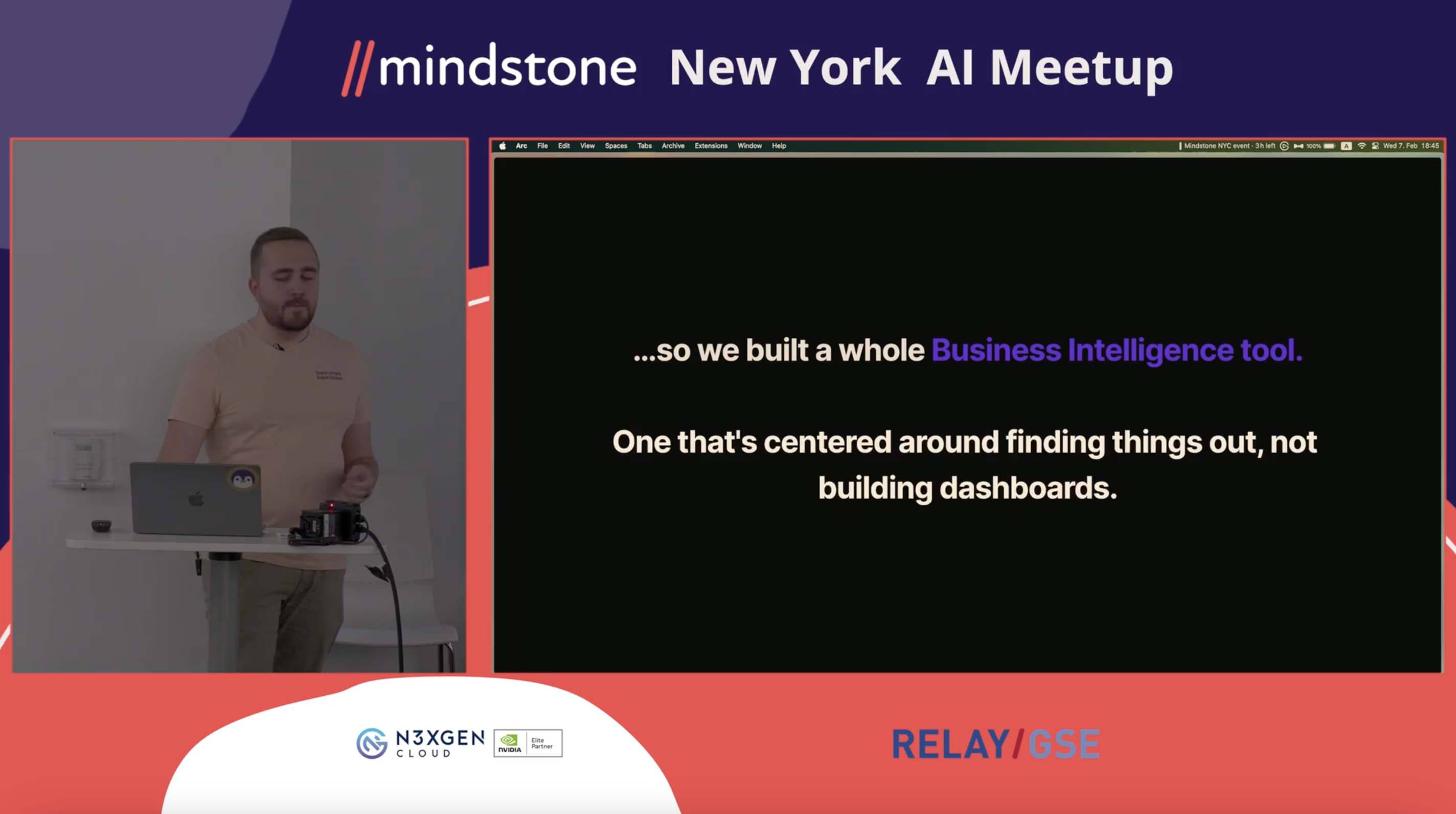So very unexpectedly, we ended up doing this massive detour of building an entire business intelligence tool to make these insights actually useful. And we built one that's centered around these sort of ad hoc questions, exploring data, not just building dashboards. And so that's the core of our product today.