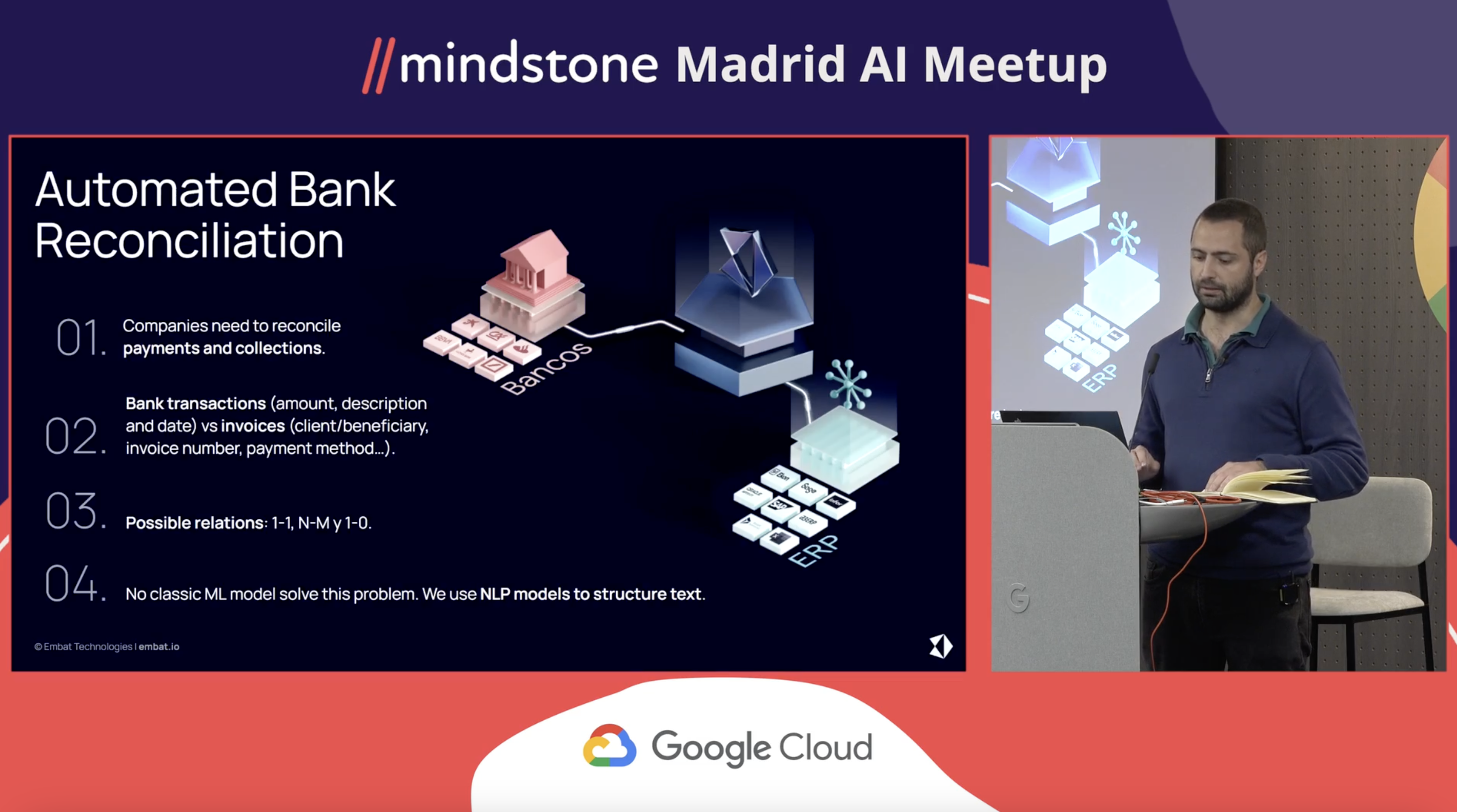 and we've developed a software as a service for finance team for medium and large companies right Embat automates different tasks for this finance team mainly payments treasury and debt management, and accounting processes.