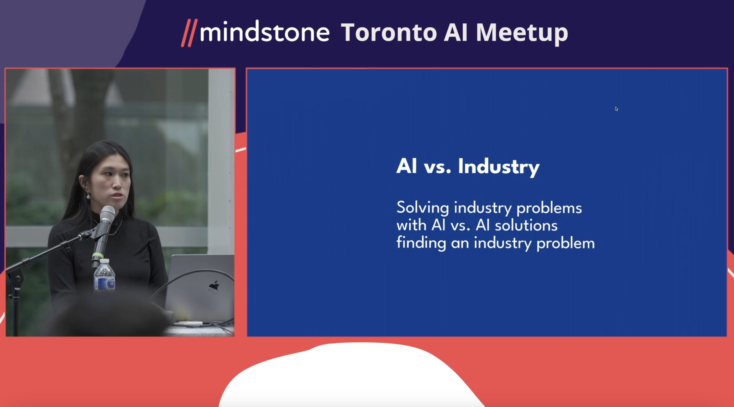 Okay, so what we're going to talk about today is basically like AI versus the industry. So is the goal to solve industry problems with AI or with the AI solutions we have today, try to find problems to solve?