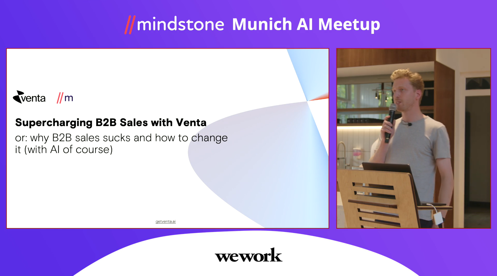So I'm talking about B2B sales and our great tool Venta today. That's at least the official title that MindStone gave me. But I'd rather call it why B2B sales sucks and how to change it.