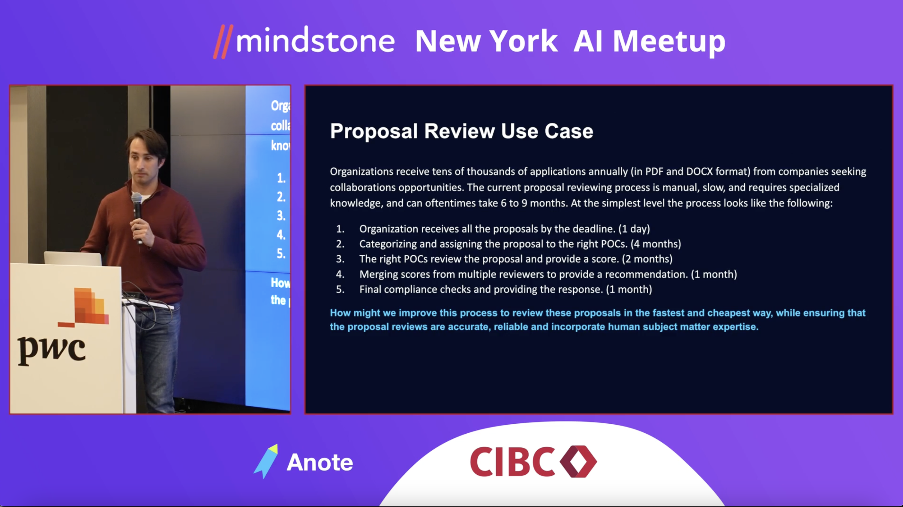 I think you can actually think about this in a real world case, where not only is it super time consuming and costly to just be going through all these proposals by hand, manually reviewing them. And this whole process just takes forever. So anyone who will apply to these proposals takes six to nine months.