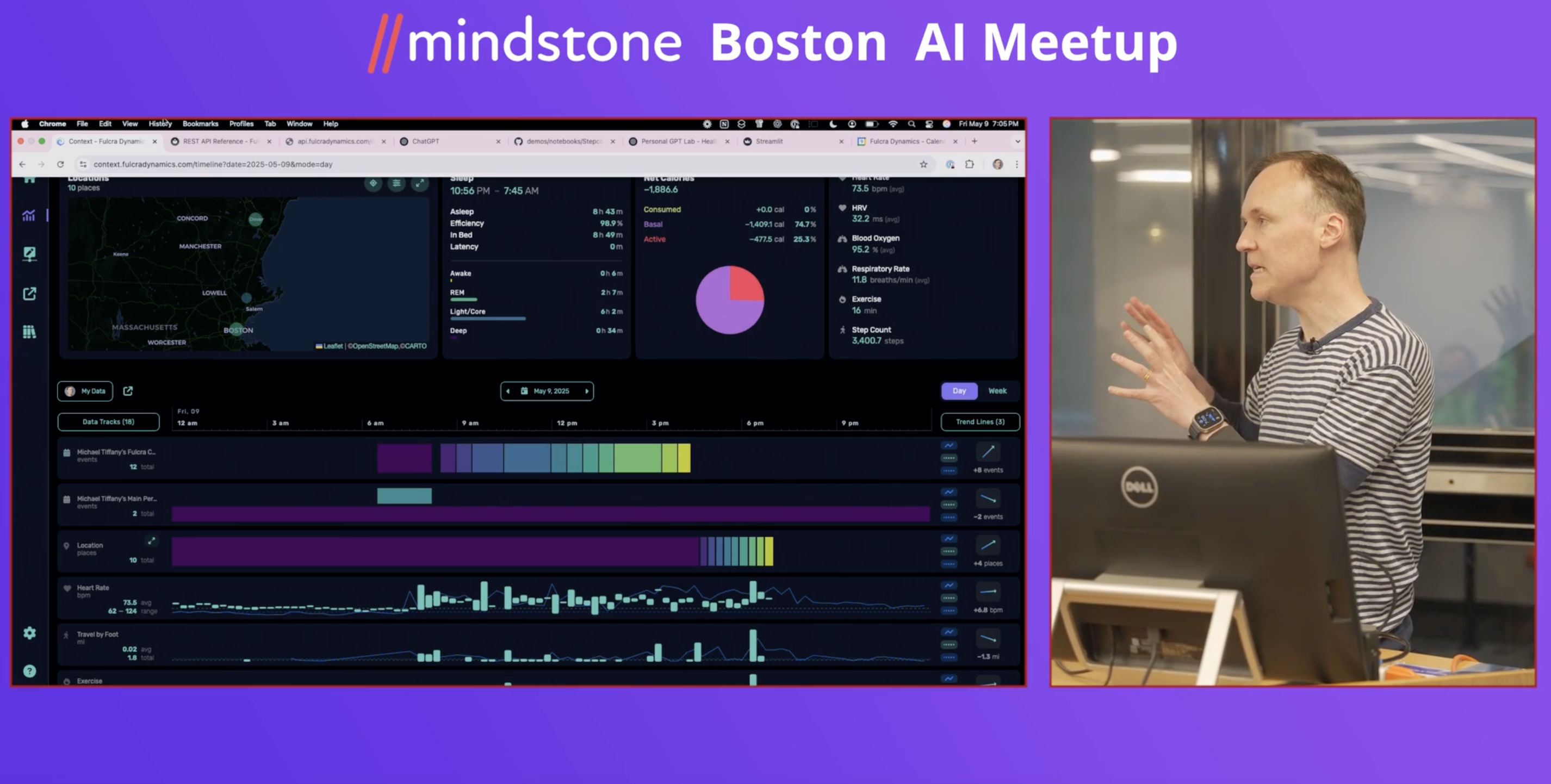 This is the Fulcra timeline, and it's got a bunch of my data. What I'm going to do is show you how this looks to a human, then what it looks like on the backend as a series of function calls.