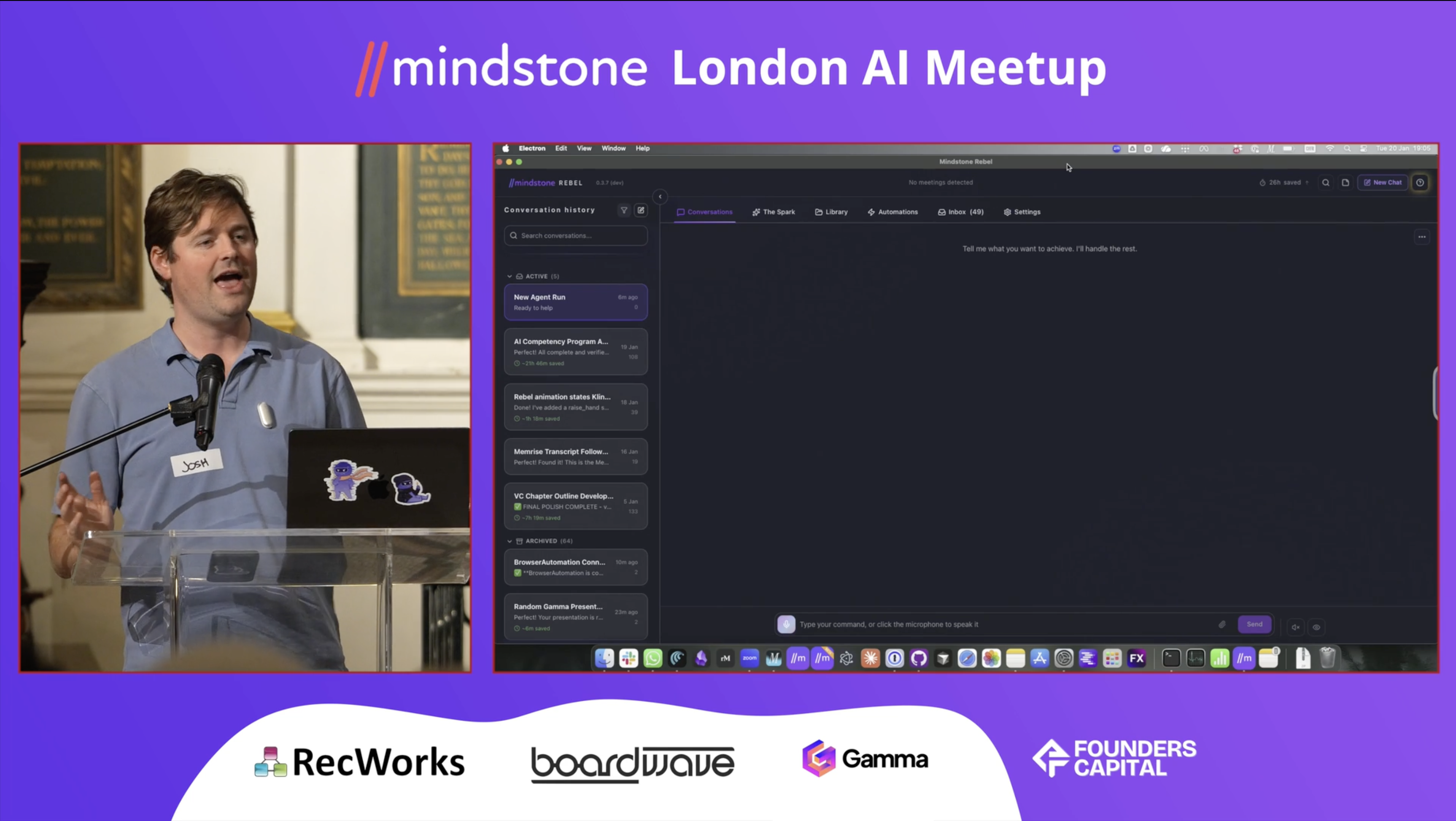 Now, I'm going to start with go through everything you know about MindStone, and I've got an audience in front of me here for the AI community in London, and tell me the best way to go and pitch MindStone.