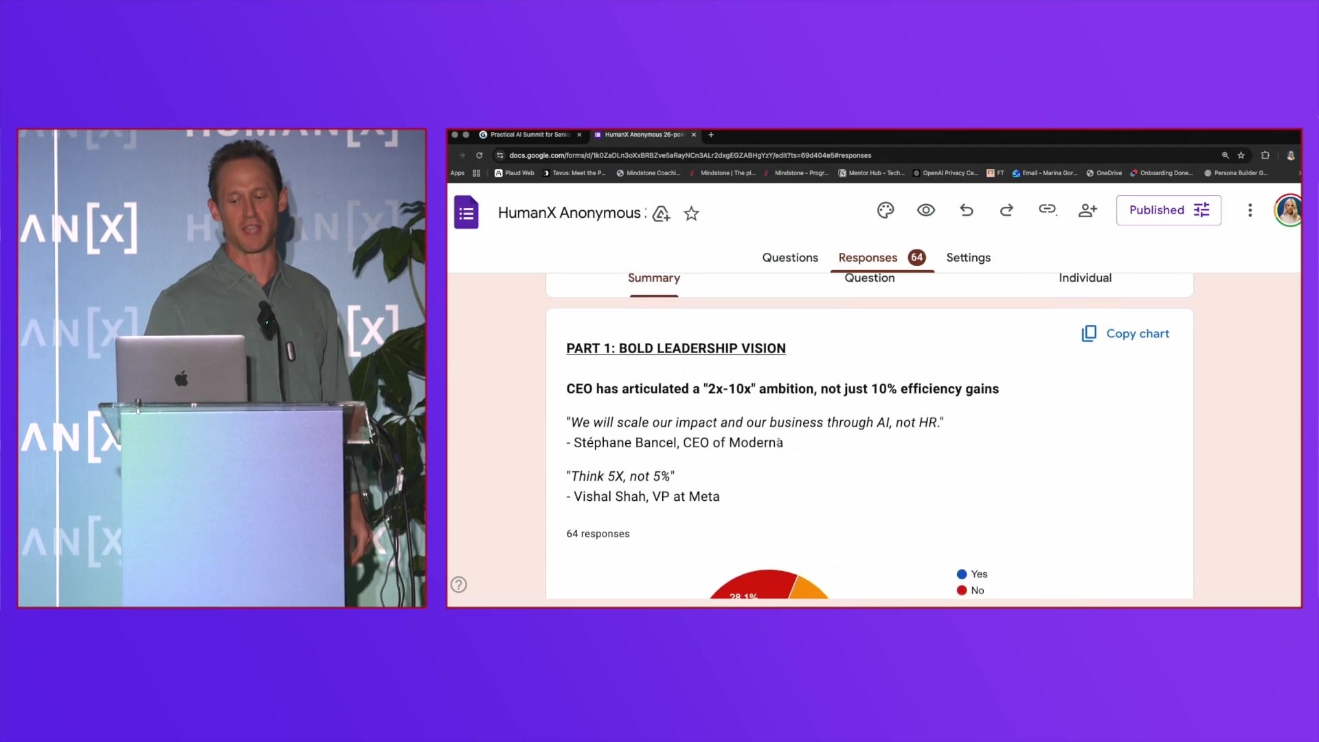calibration three people are tracking with me which is great okay so uh ceos articulated a 10x ambition not just 10 efficiency gains okay by the way 60 of us responded which is great so it's like about half the room it seems like yeah there's there's a ambition okay great